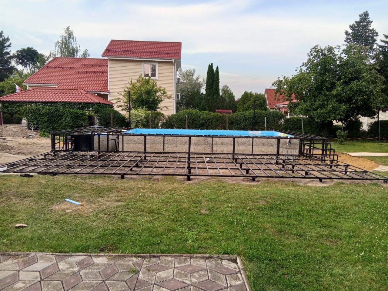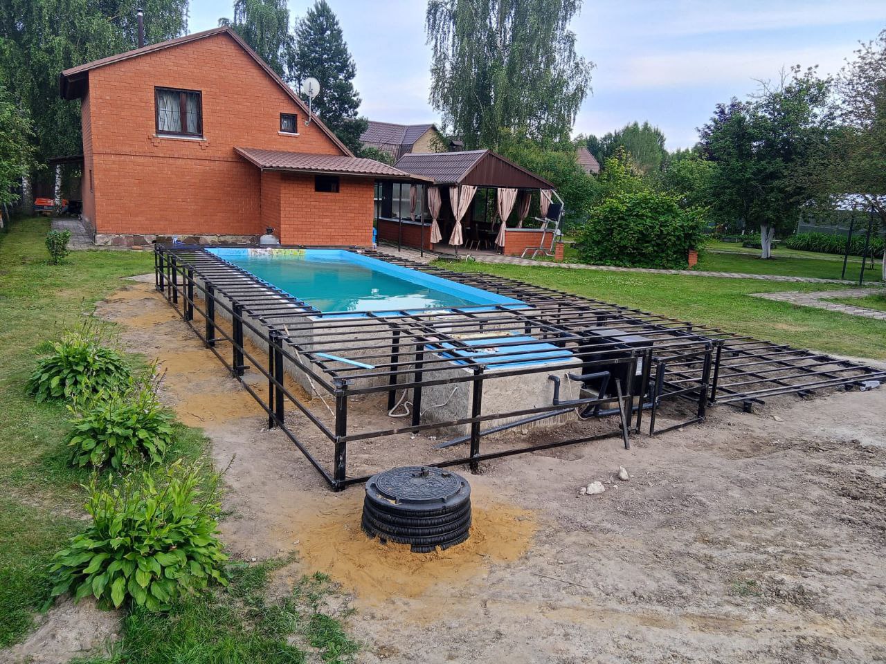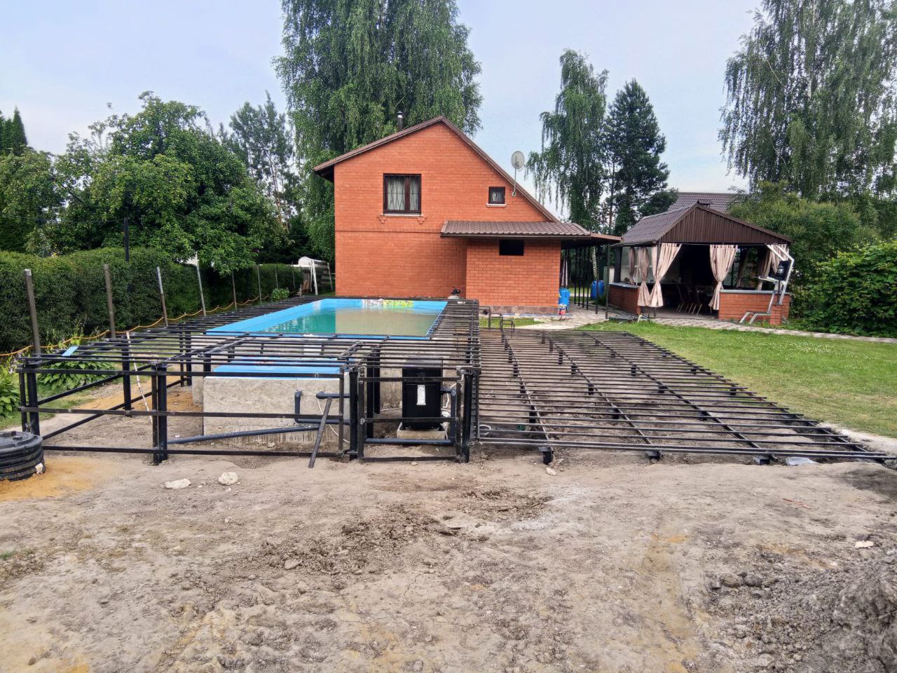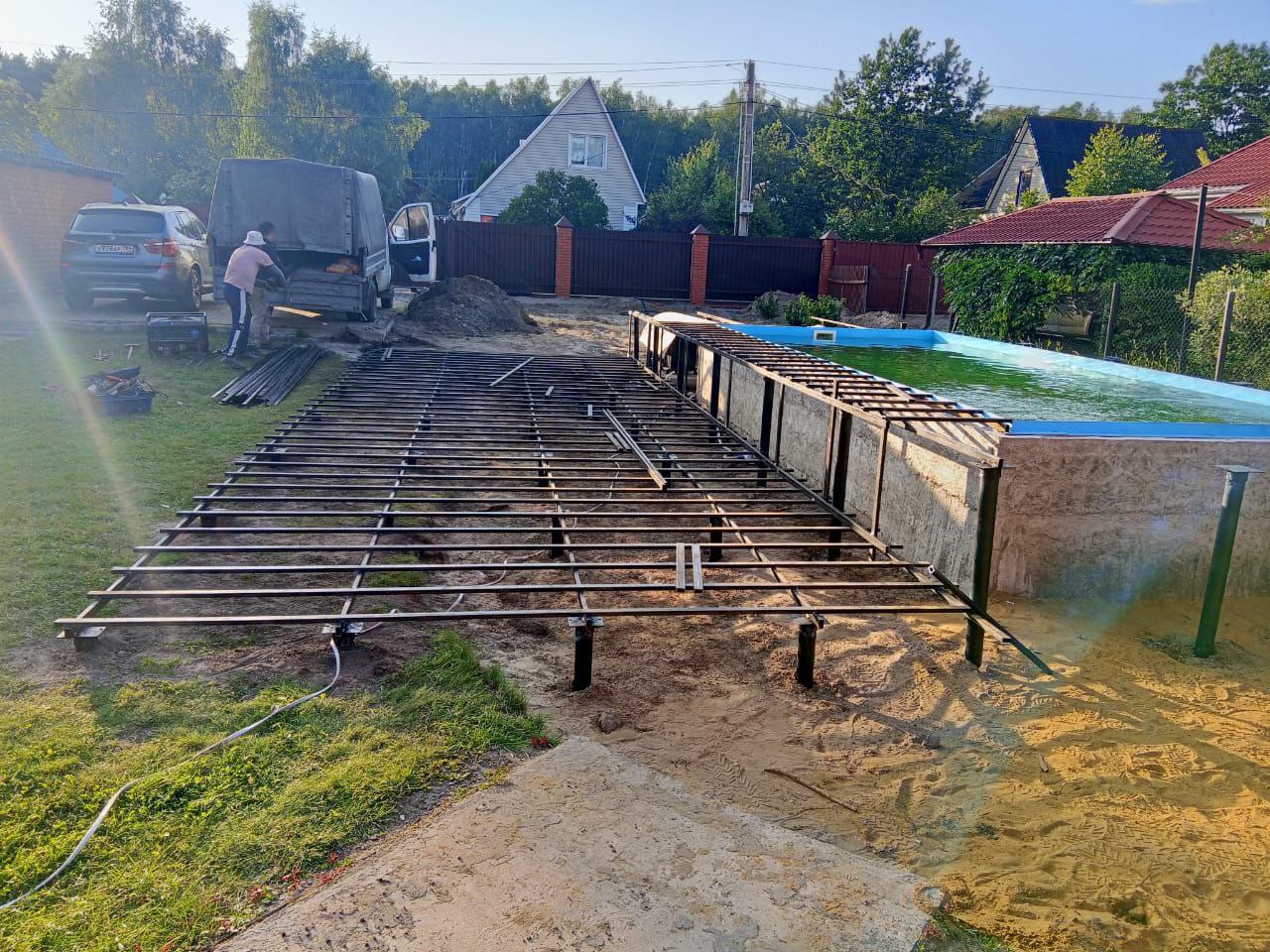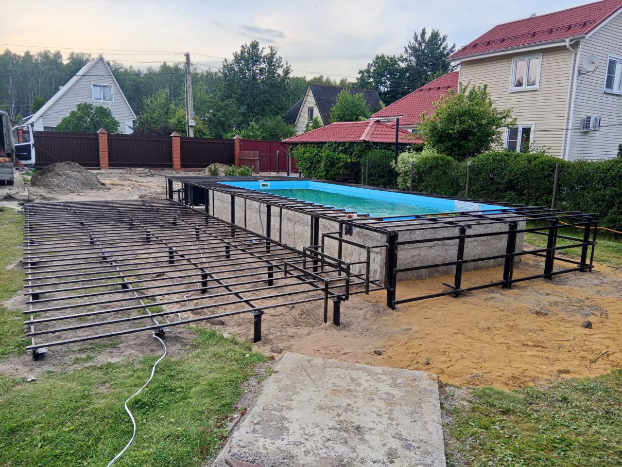 Перед началом работ наши специалисты выехали на объект для проведения замеров и анализа грунта. Учитывая близость бассейна, важно было обеспечить устойчивость фундамента даже в условиях повышенной влажности. Было принято решение использовать винтовые сваи диаметром 76 мм – оптимальный вариант для подобных конструкций, так как они обеспечивают надежное сцепление с грунтом и не подвержены сезонным подвижкам.