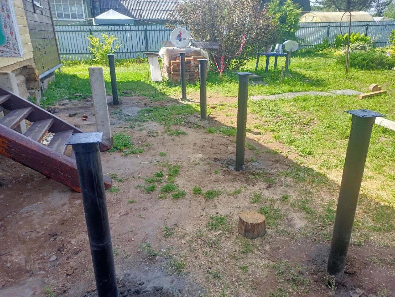 После монтажа все сваи были обрезаны в один уровень и заполнены бетоном для дополнительной прочности и защиты от внутренней коррозии. На готовые свайные поля установили оголовки и смонтировали обвязку — металлическую или деревянную, в зависимости от потребностей заказчика. Все работы были выполнены без нарушения ландшафта, без лишнего шума и пыли, с соблюдением норм экологической и технической безопасности.